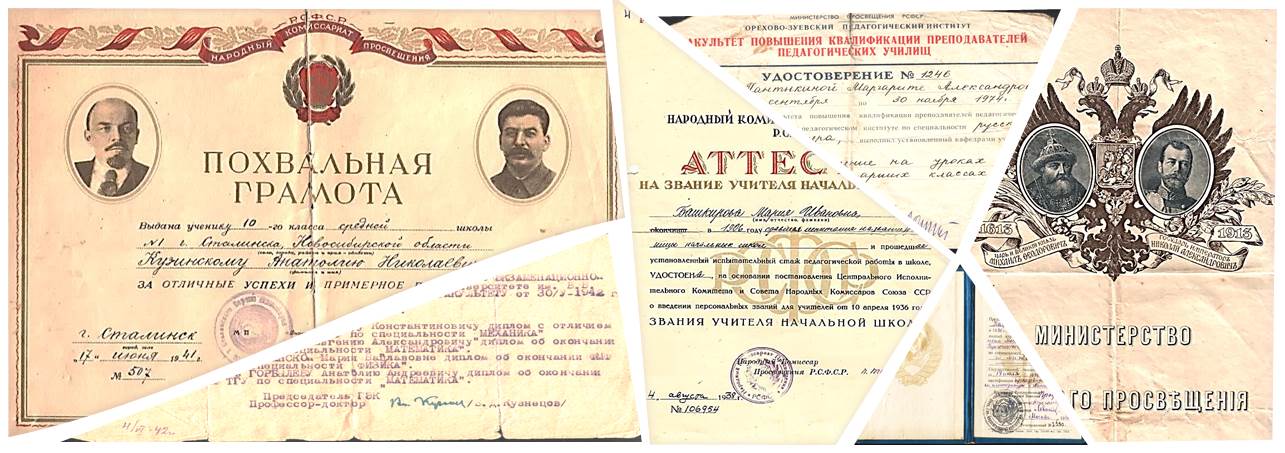 Документы прошлого столетия, которые когда-то принадлежали учащимся, выпускникам учебных заведений, разительно отличаются от тех, что россияне получают сегодня. С течением времени документы об образовании меняли свой размер, оформление и содержание. За каждым аттестатом зрелости, дипломом — история обычных людей в контексте истории страны. И у документов, как и у их обладателей, есть биография. Изучив документы об образовании разных лет, можно увидеть, как менялась система народного образования в разные исторические периоды Российского государства.